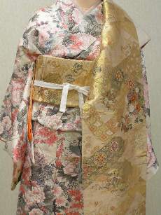 ご用意いただく物は、袋帯、帯枕、帯揚げ、帯の押さえ紐(仮紐)、変わり結び用の三重紐。